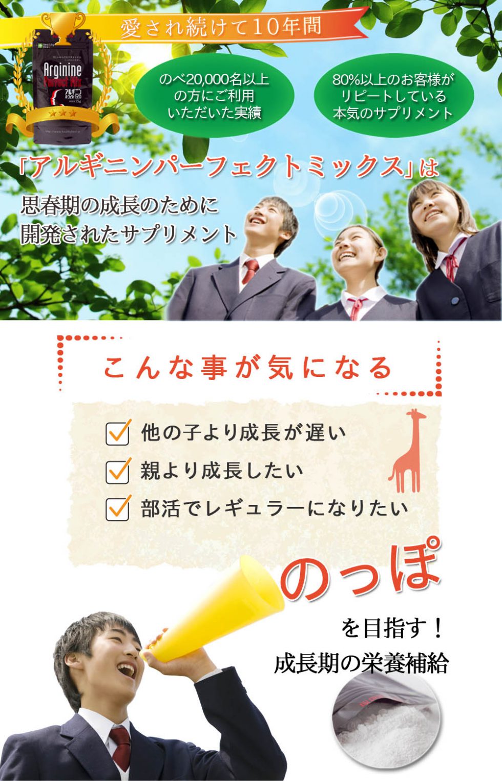 成長期を逃さず、アルギニンをしっかり摂取しておきたいですね